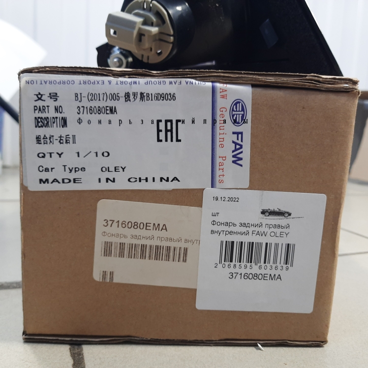 Фонарь задний правый внутренний FAW OLEY . Артикул 3716080EMA